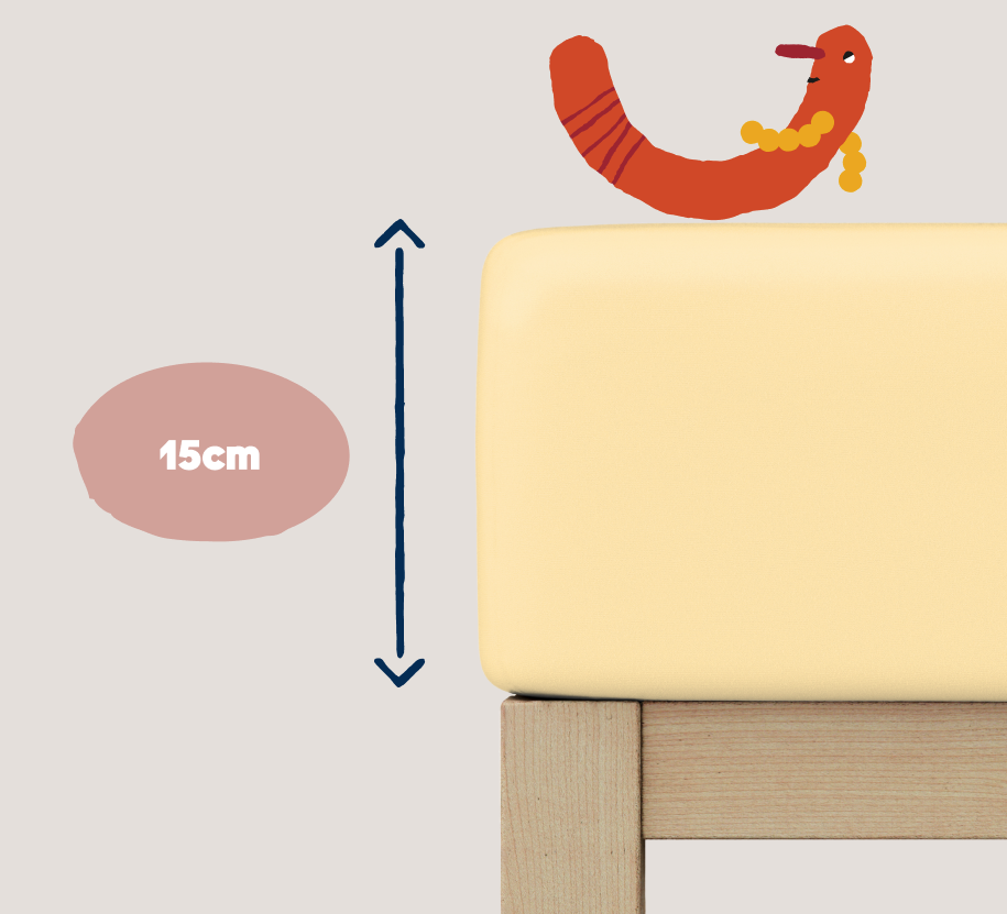 Als Erfinder des Spannbettlakens wissen wir dass extra lang genähte Ecken entscheidend für den perfekten Sitz auf der Matratze sind. Auch bei den Kleinen.