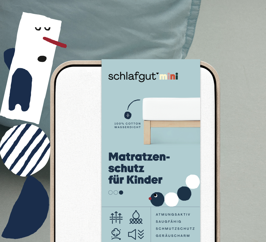 Der Stein der Weisen unter den Matratzenschonern: Unser Matratzenschutz für Kinder. Er vereint gleich zwei Superkräfte, nämlich wasserdichten Schutz und ein atmungsaktives, geräuschloses Finish. Dafür haben wir den flauschigen Molton mit einer speziellen PET-Membran ausgestattet. Das schützt dein Kind und die Matratze vor bösem Erwachen und lässt es richtig gut schlafen.