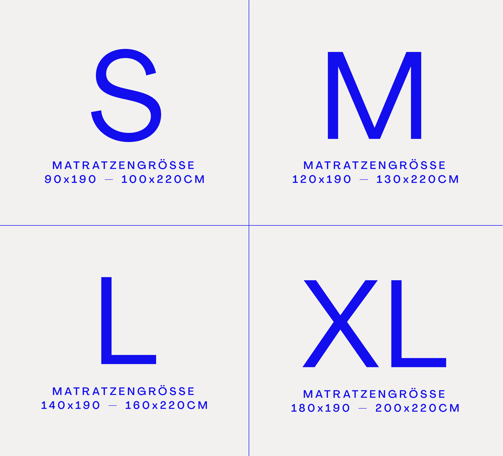 Endlich ein einfaches Größensystem für Spannbettlaken. So findest du schnell und unkompliziert die richtige Größe für dein Bett. Alle unsere Größen passen dabei auf jeweils mehrere Matratzenmaße.